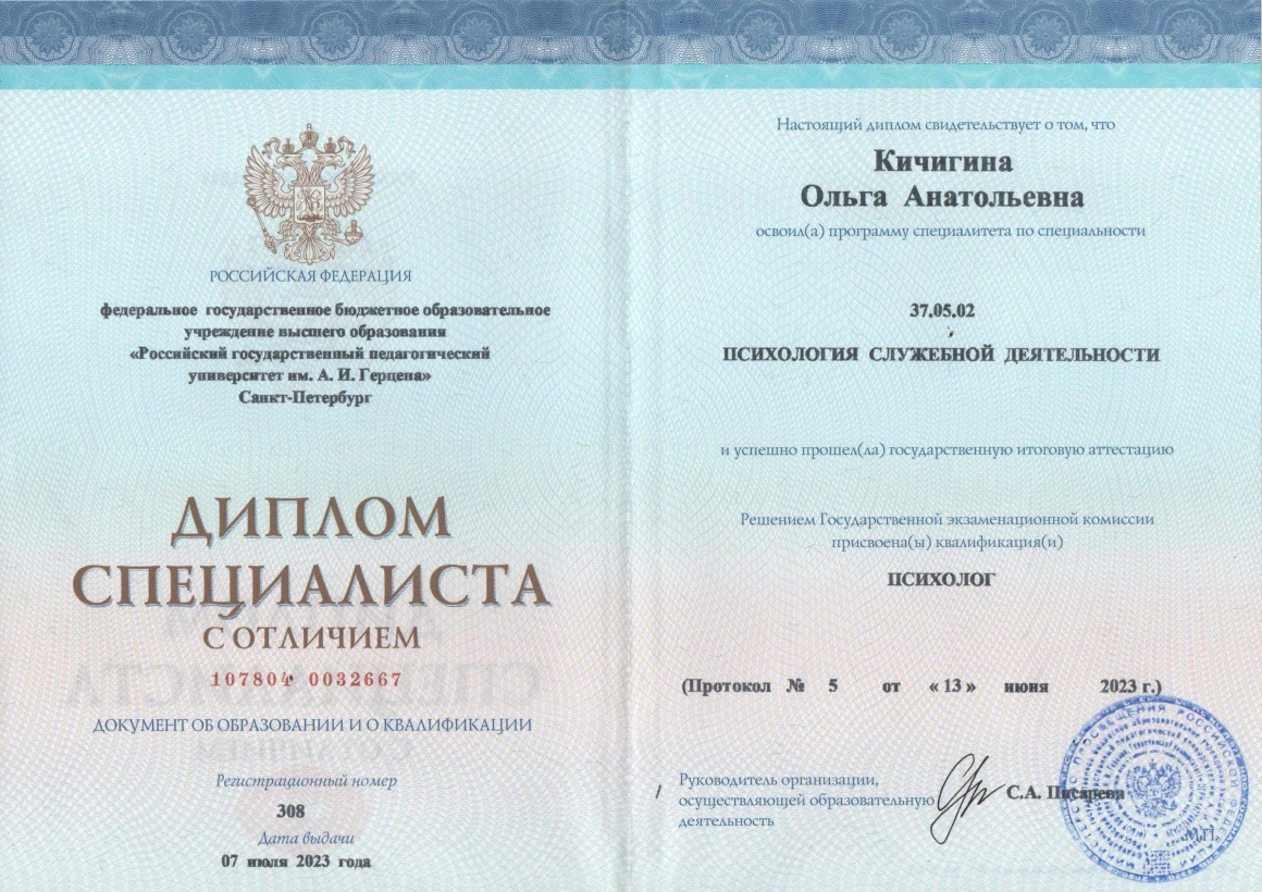 2018-2023 гг.– базовое образование (специалитет) в институте психологии РГПУ им. А.И.Герцена.